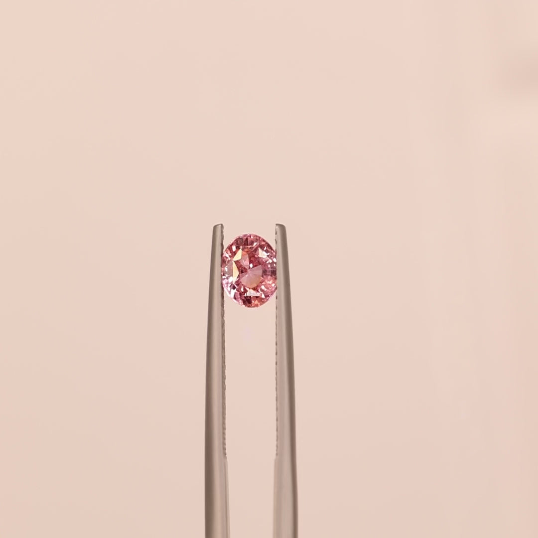 Bathe in the glow of a soft tropical sunset with this 1.02 carat Padparadscha sapphire, a gem that beautifully blends warm orange and delicate pink tones. Its colour radiates with every movement — soft and graceful indoors, yet vibrant and full of life under natural sunlight.